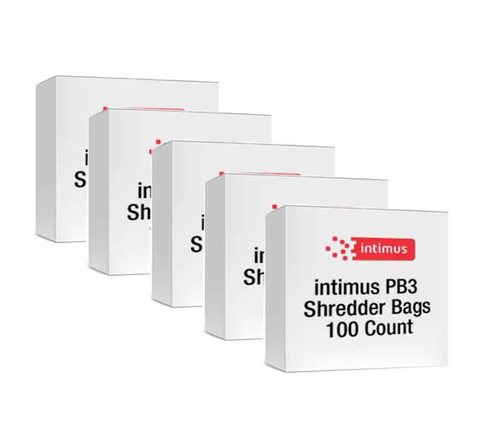 To ensure best fit and strength use only intimus brand waste collection bags. They are available in a variety of sizes that fit properly in our shredders while providing maximum collection volume and resistance to tearing and breaking. Don’t risk a mess using bargain bags, insist on intimus waste collection bags.