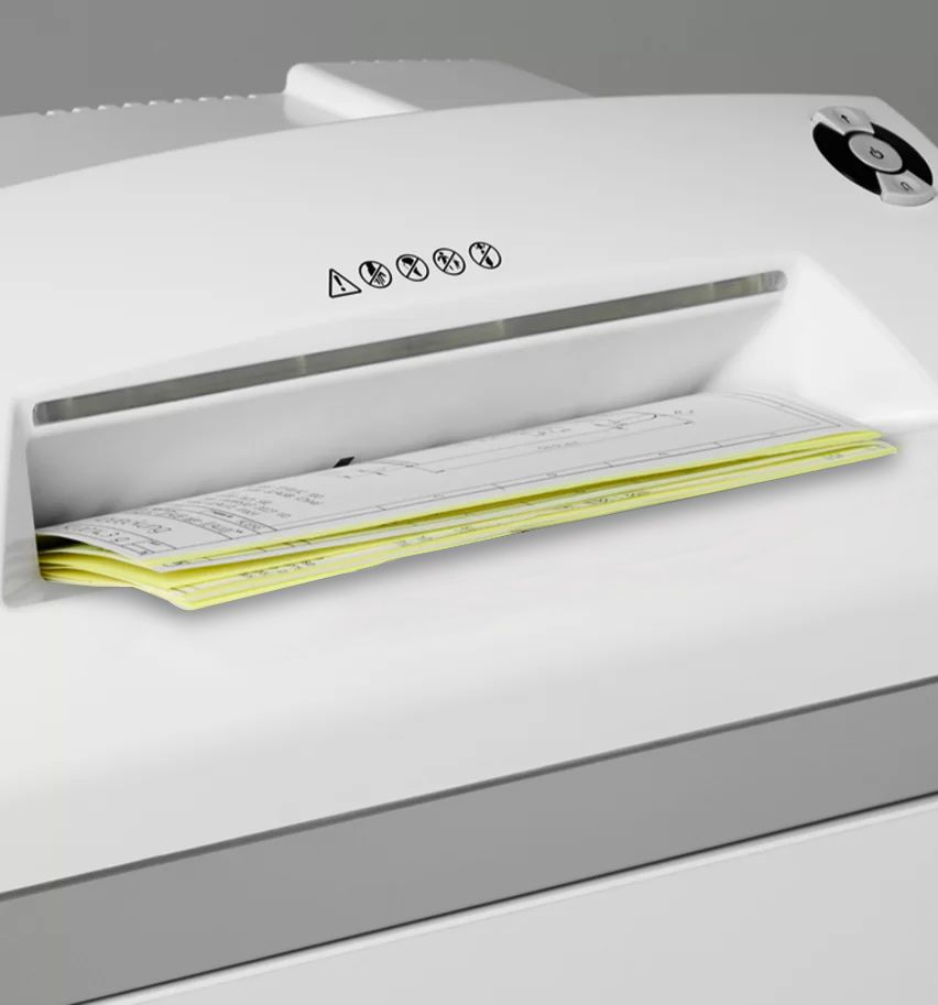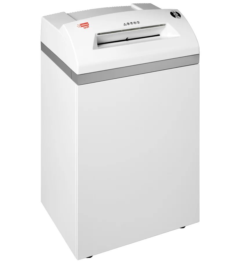 The intimus 120 CP4 Medium/High-Volume Office Paper Shredder is designed to be the one-size-fits-all shred solution for even the busiest office environment. This attractively styled shredder with hardened steel cutting cylinders will shred almost anything you throw at it: up to 25 sheets of paper per pass, complete with staples and paper clips, as well as other media including CDs, DVDs, paper clips, and plastic ID cards and credit cards. The 120 CP4 boasts one of the highest throughputs of any medium volume office paper shredder at 736 sheets per minute.