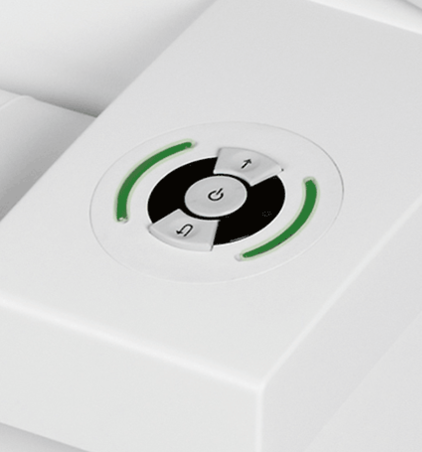 i-Control smart switch with auto start/stop and illuminated indicators for stand-by, bin full, door open and paper jam
