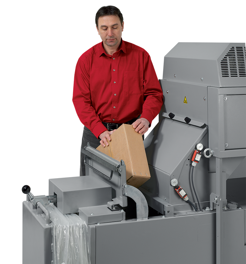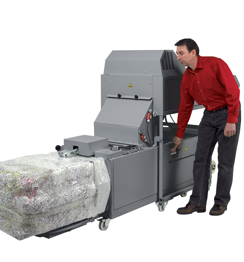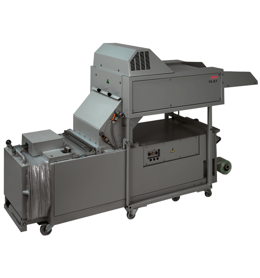 Two models models of the 14.87 Industrial Shredder Baler are available, the 14.87 S-3 produces paper waste particles that meet DIN Level P-3 and the 14.87 S-4 produces paper shreds that meet DIN Level P-4.